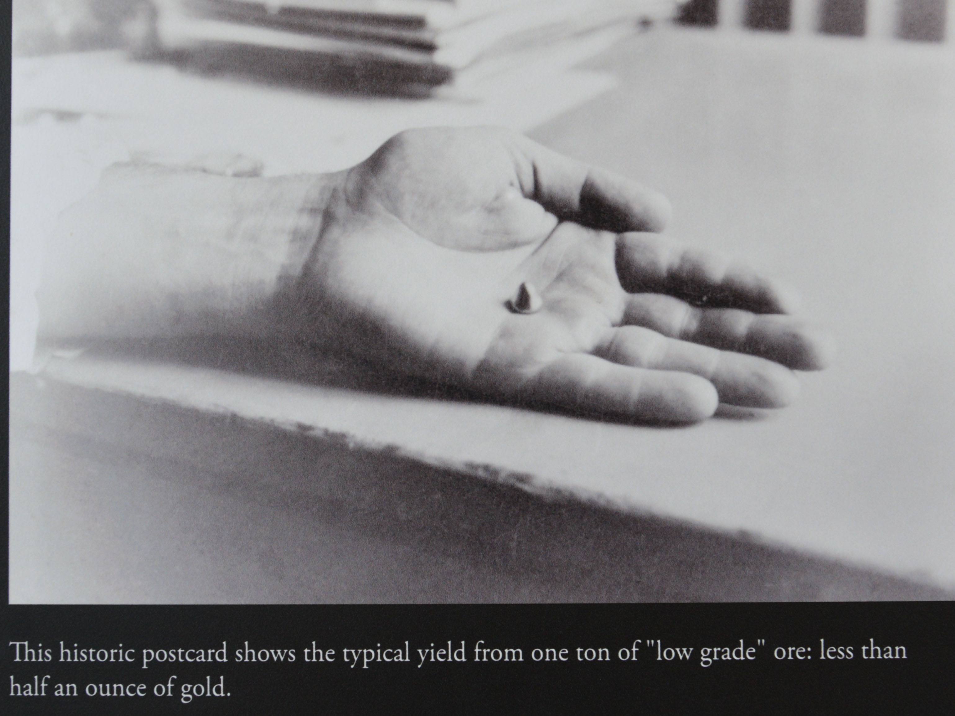 Typical yield from one ton of “low grade” ore was less than half an ounce of gold.