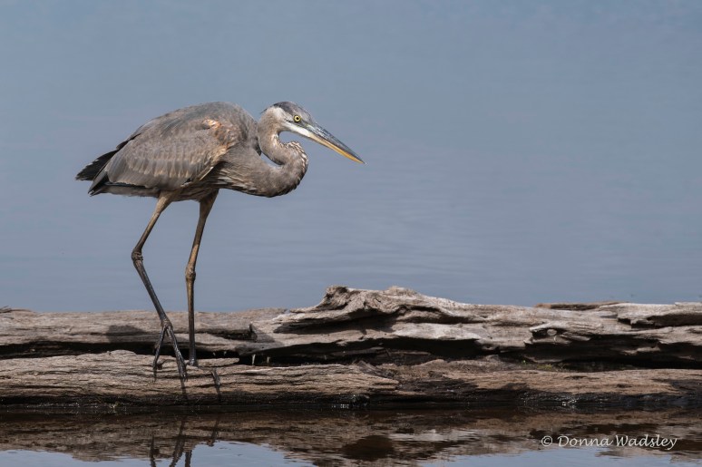 I came to a slow stop when I spotted this Great Blue Heron as he walked along a log.