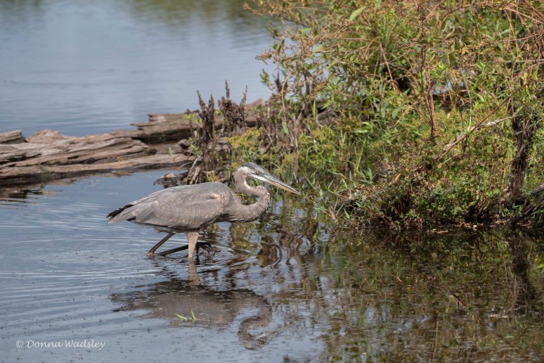 The heron departed the log and kept on with its slow pace, stalking the waters.