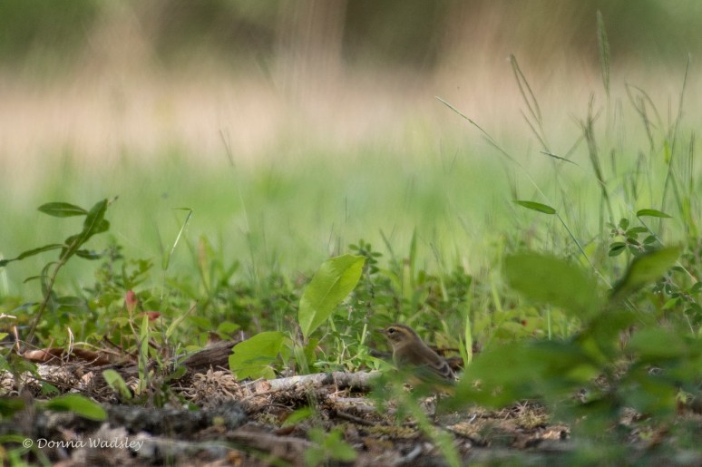 Maybe a dozen or so Philadelphia Vireos were flitting about in a tree, then dropping to the grass to forage.