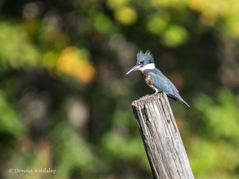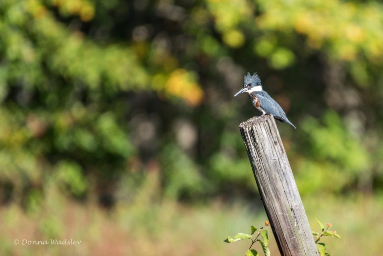 This pretty female Belted Kingfisher sitting on an old post over the marsh at Chesapeake Farms was so focused on watching the water below her, that if she saw me, she didn’t seem to care.