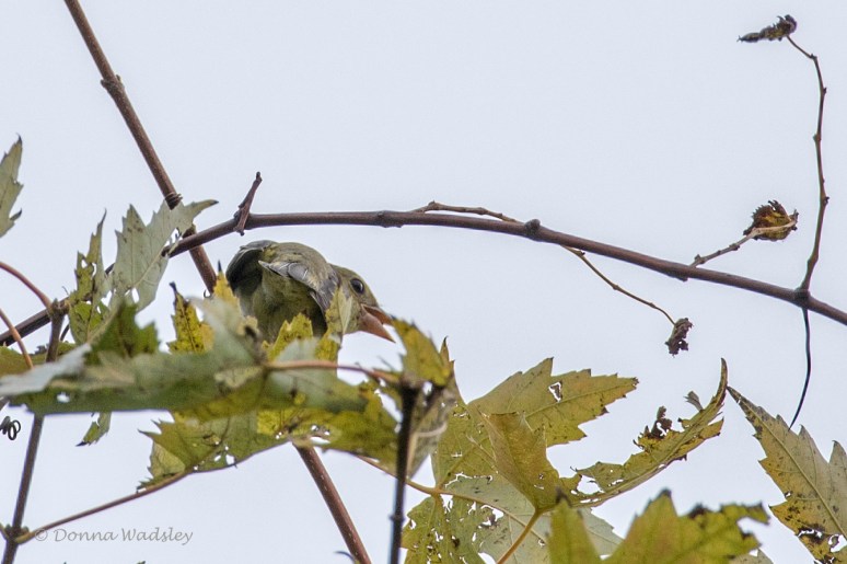 I got these two shots, and there’s not much to show to help ID. So I’ll just let it shine as a pretty bird enjoying life way a-top a tree.