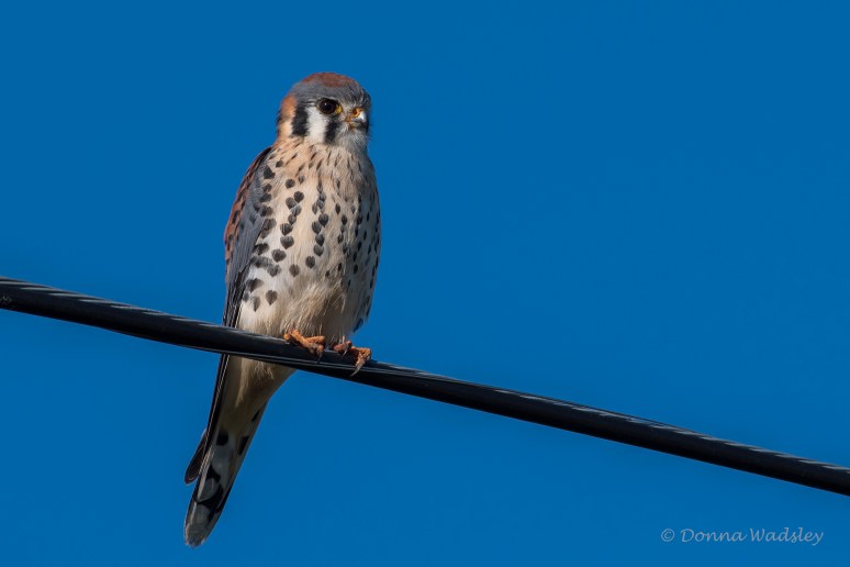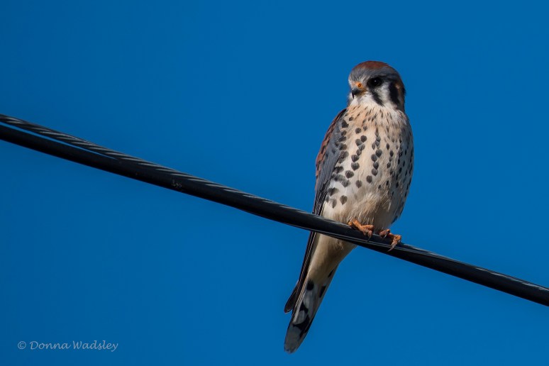 How fortunate for me to see almost daily American Kestrels flying across or sitting on wires, watching over the local farm fields for their next meal.