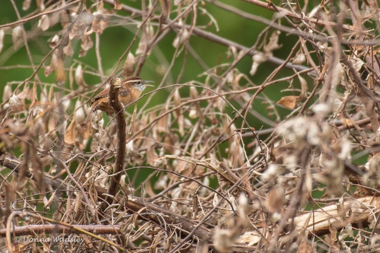 A family of five Carolina Wrens have been enjoying our brush piles, searching for insects.