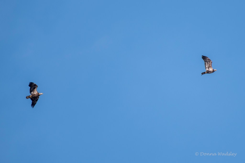Immature Eagles playful in flight