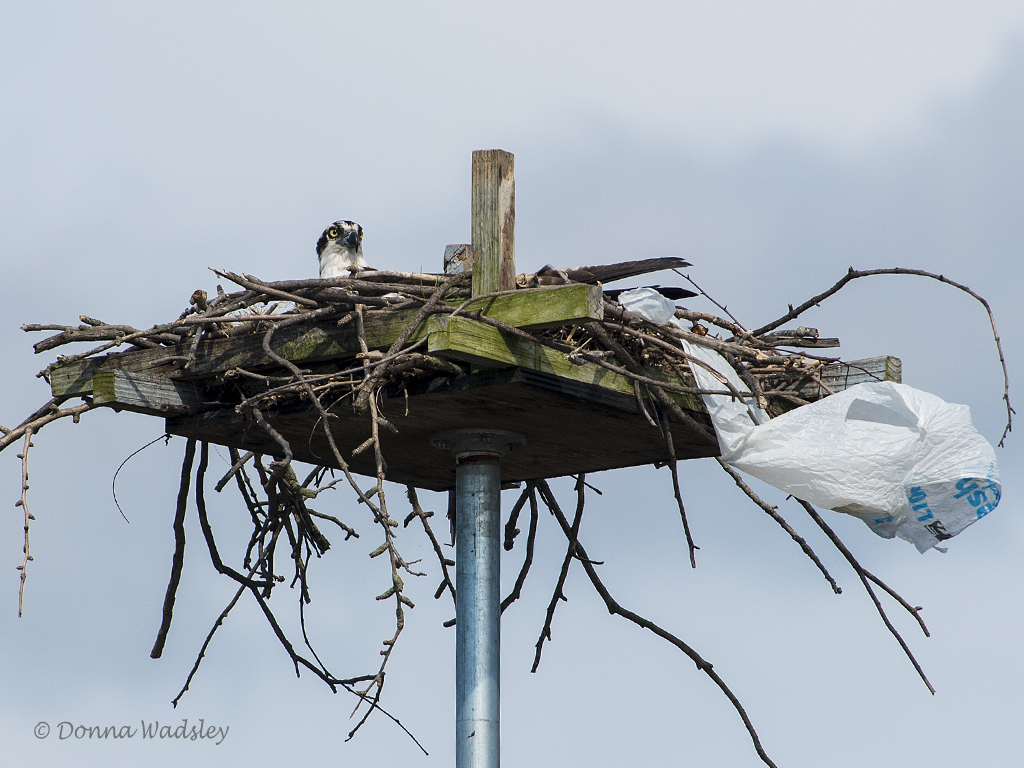 Usually by the end of April, the Chesapeake Bay Osprey have laid 2-4 eggs; so it is now brooding time, which is the female’s primary job.