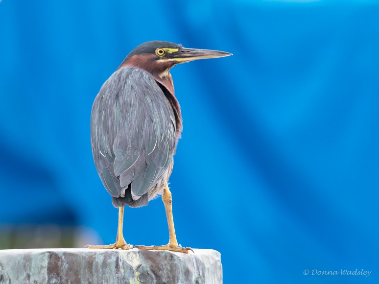 Last week, a very cooperative Green Heron flushed out and flew over to a piling two down from ours at the marina as I was sitting on our boat.
