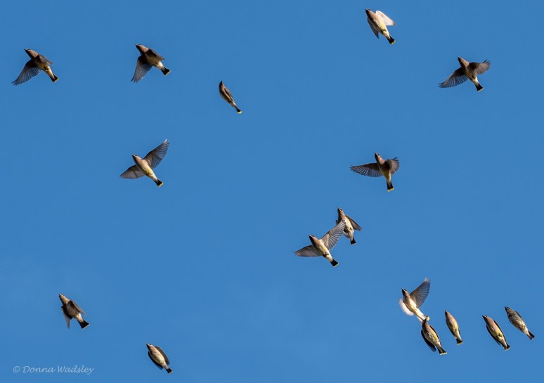 I have a new passion for Cedar Waxwings. Before the last few months, I’d only seen a small flock of a dozen or so at most, not often either.