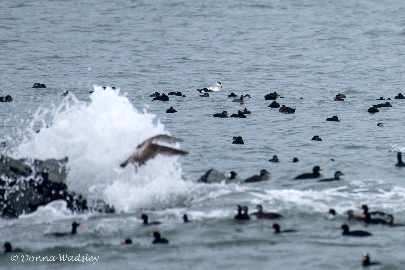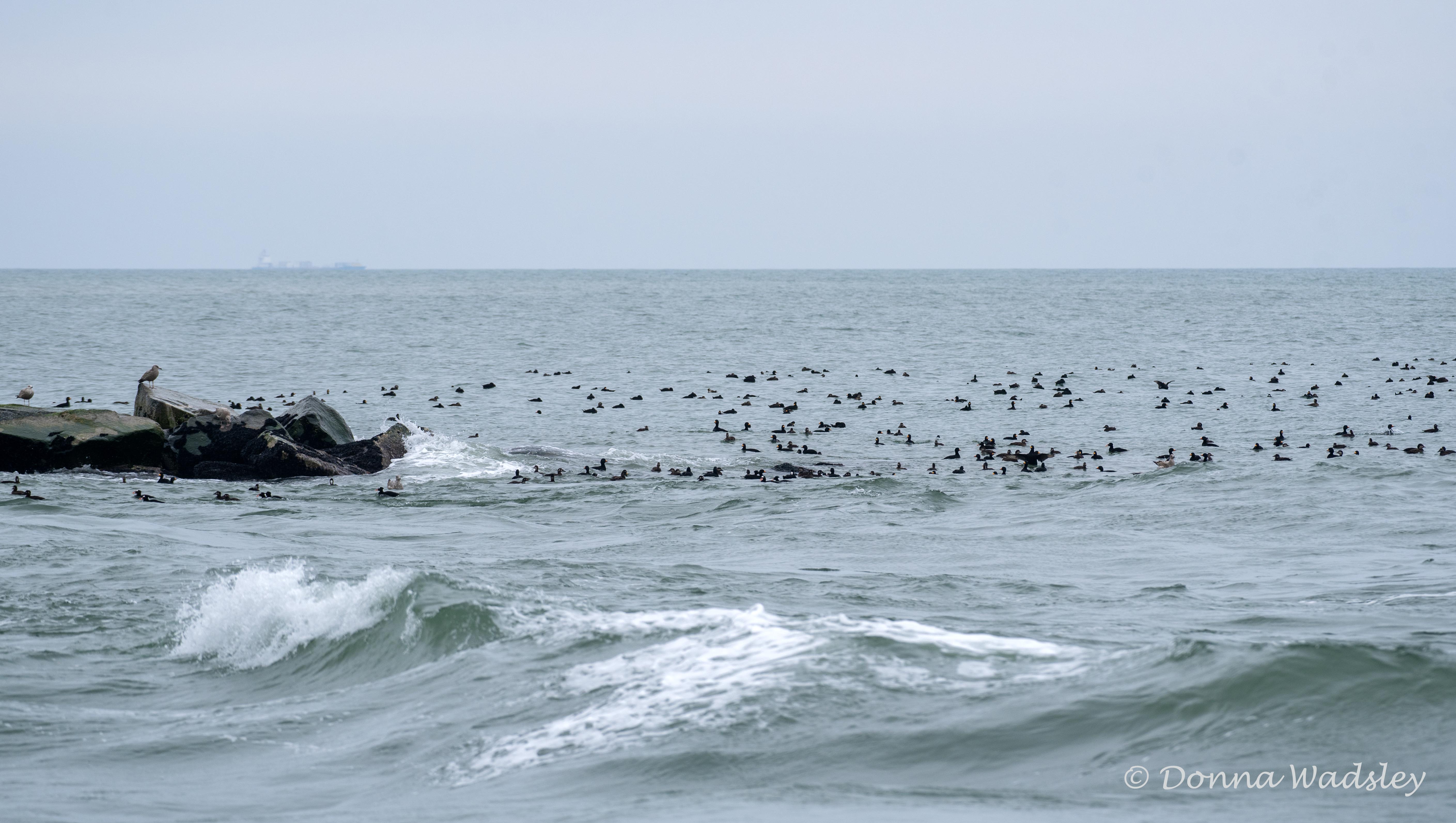 Arriving and setting up scopes, the sight was almost overwhelming, with ducks fishing in the inlet, as well as an estimated 1,200 Scoters bobbing up and down out in the Atlantic Ocean. 😲