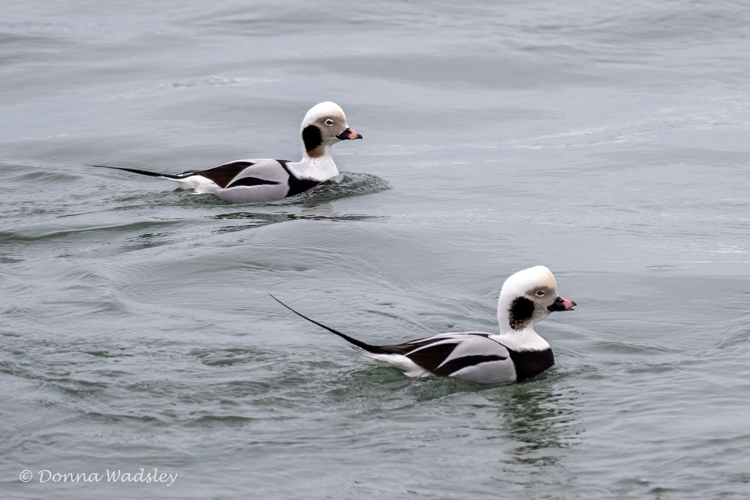 But first, we couldn’t help but marvel at the many Scoters, Buffleheads, and 20+ Long-tailed Ducks right out in front of us. Those male Long-tails are such beauties! I got so many photos of them, here’s just three.