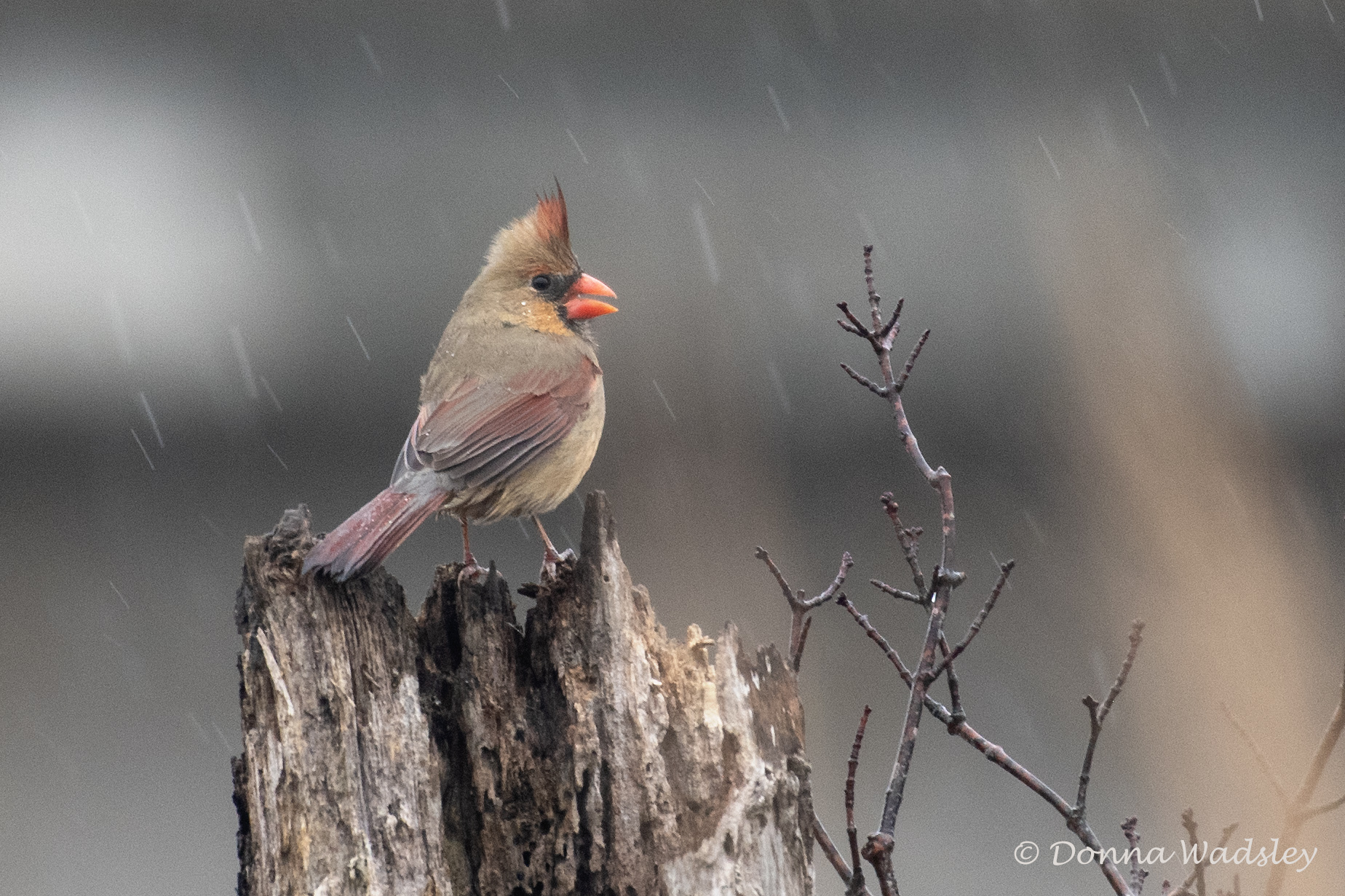 I’m excited for my backyard Eastern Bluebird pair. They’ve been around all winter; but in past weeks, they are actively keeping tabs on their nest box. This old snag is behind the nest box, where right now they like to perch and swoop at any other bird coming near. No nest building yet.