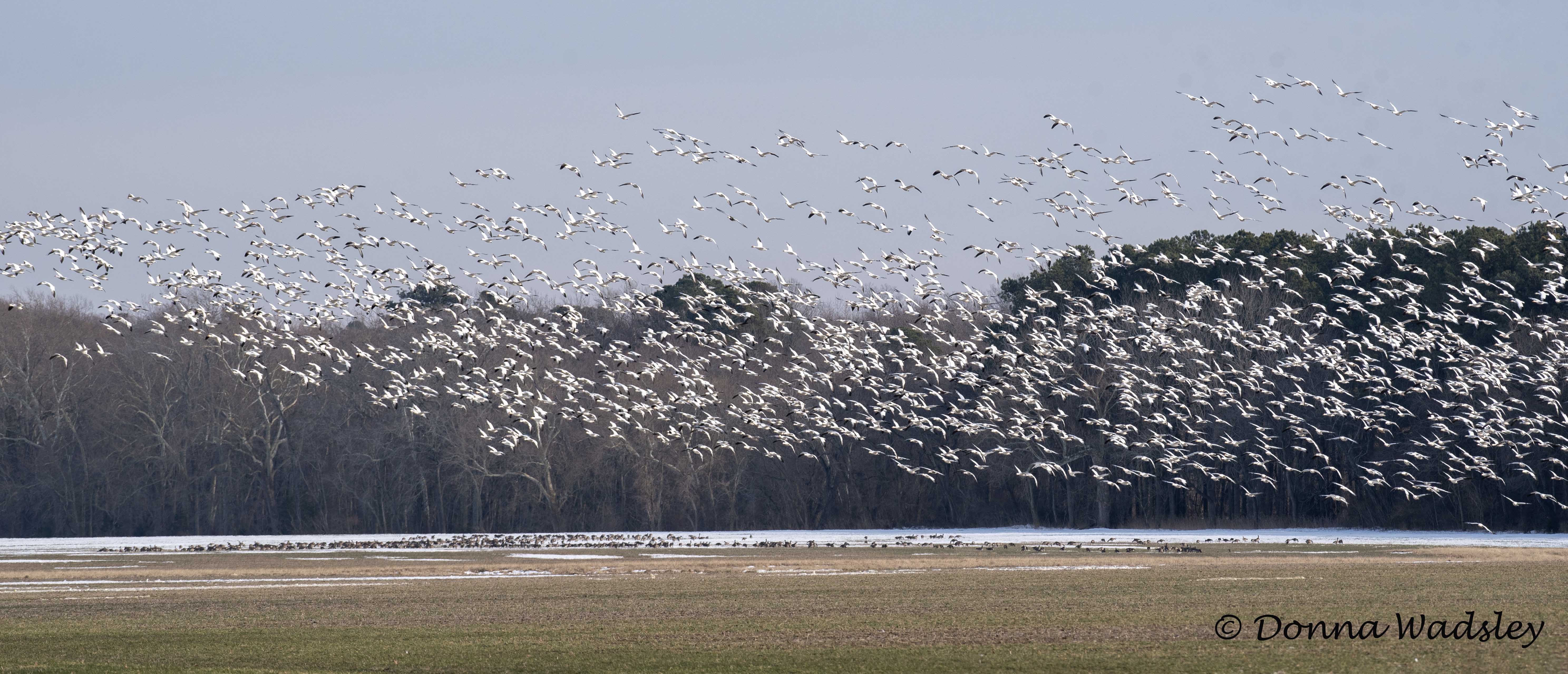 I photographed another huge flock at a distant, this one was in late January. A flock of Canada Geese were in the back with a few in the front mix.