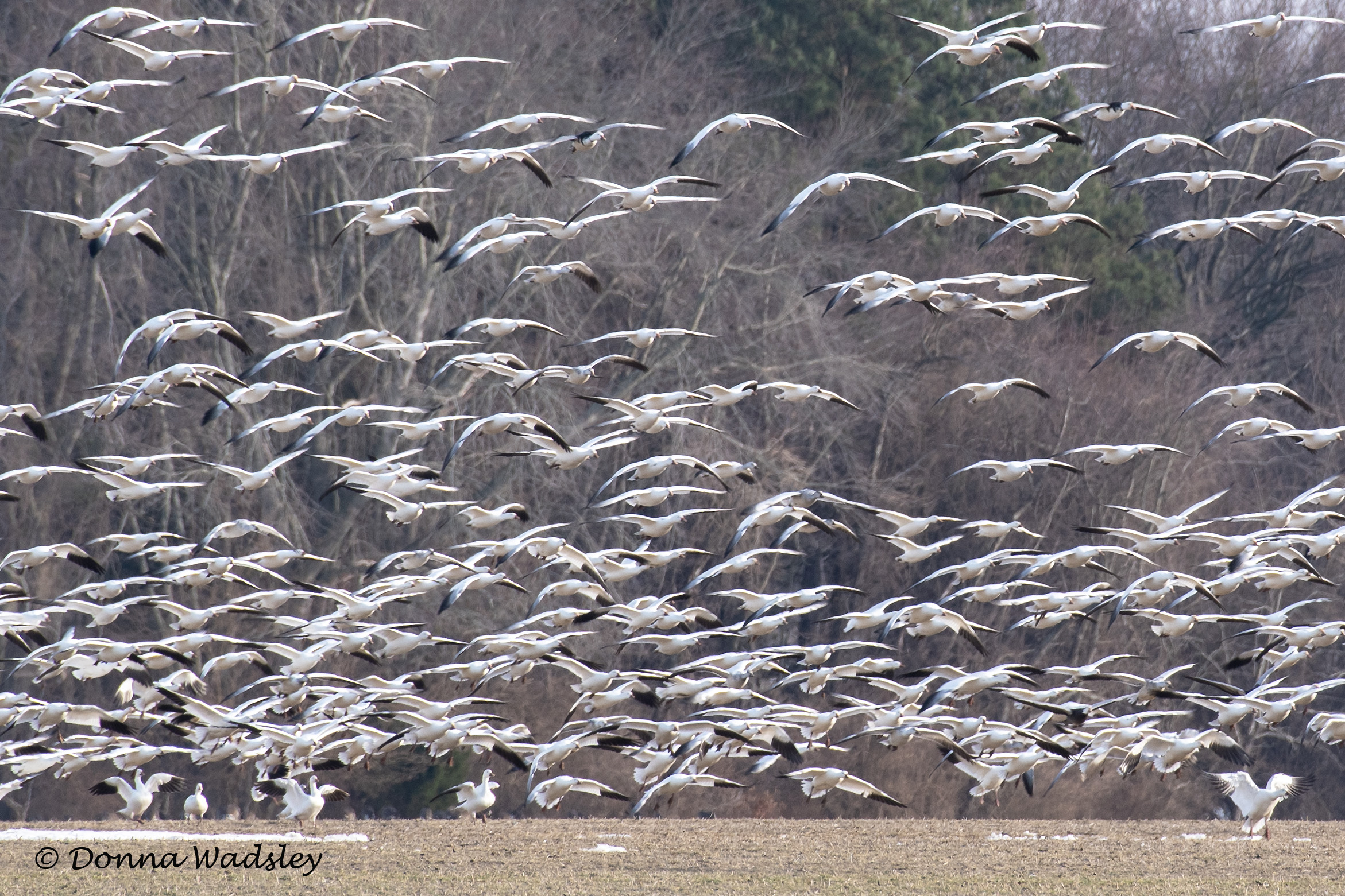 Including my last post on Snow Geese, I was lucky to come upon quite a few Snow Geese flocks this past winter. Some were at a great distance, just a big white-out in a field. The flocks travel around the same regions all winter, but to know where they are any given day is a guess. I know now some excellent county back roads crossing vast farm fields where there’s always a chance of a sighting.
