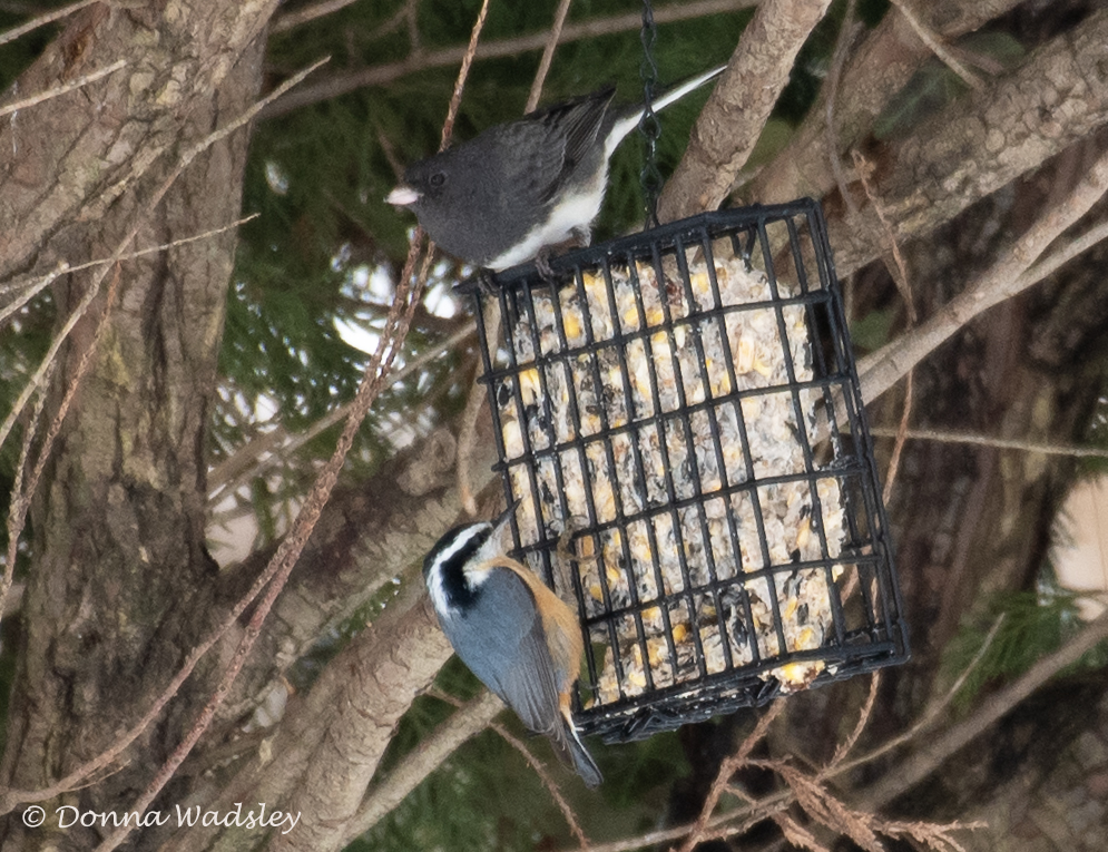 Dark-eyed Junco (top) and Red-breasted Nuthatch (bottom)