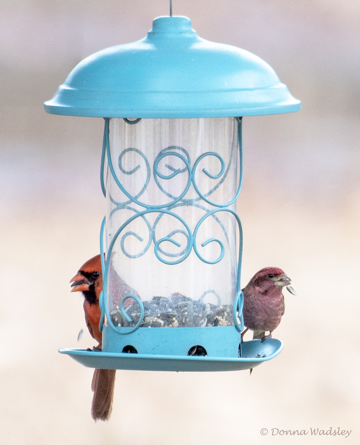 Northern Cardinal and Purple Finch