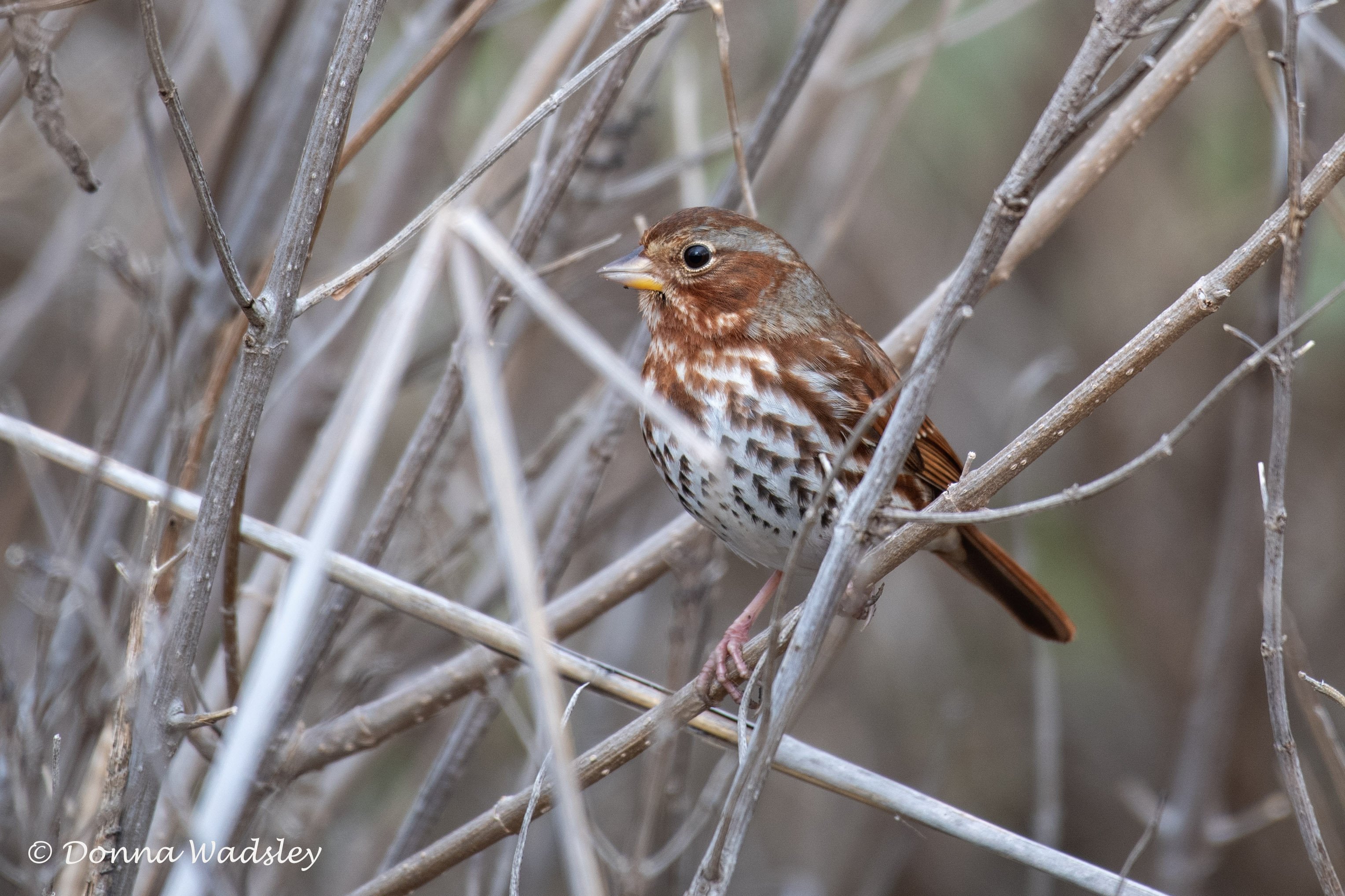 Donna – what a cutie pie this little Fox Sparrow is and weren’t you lucky seeing it right up close and personal and it liked your voice as well. 🙂
