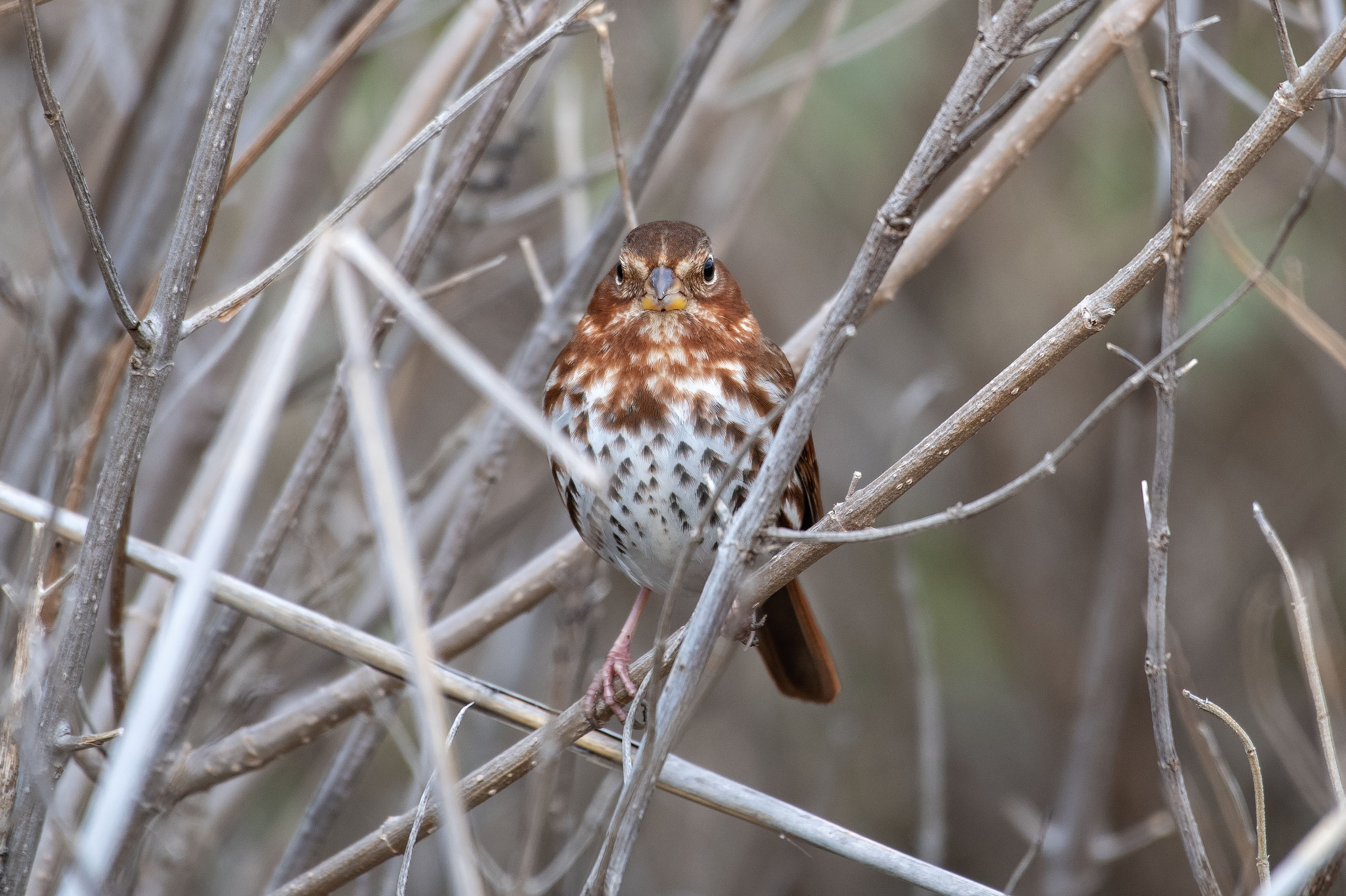 Fox Sparrows winter over the eastern half and southwestern portions of the United States, but finding them isn’t so easy with their hiding skills.