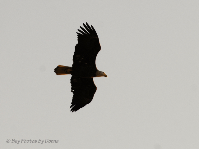 I’ve learned that sometimes when that happens, I’ve seen an eagle appear, which of course frightens the ducks! And indeed this young bald eagle passed on by high in the sky.