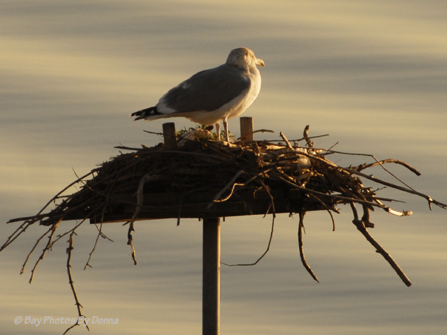 Yesterday was another bright & beautiful breezy day. An early morning perch was enjoyed by a gull on our osprey nest, enjoyed enough to sit-and-stay for a while.