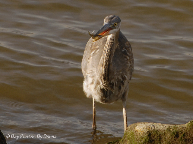 Did you notice during the fish capture and digestion that Blake fluffed his feathers couple times? And with a toss & throw-back of his head, you could almost hear Blake gulping that little fish down!